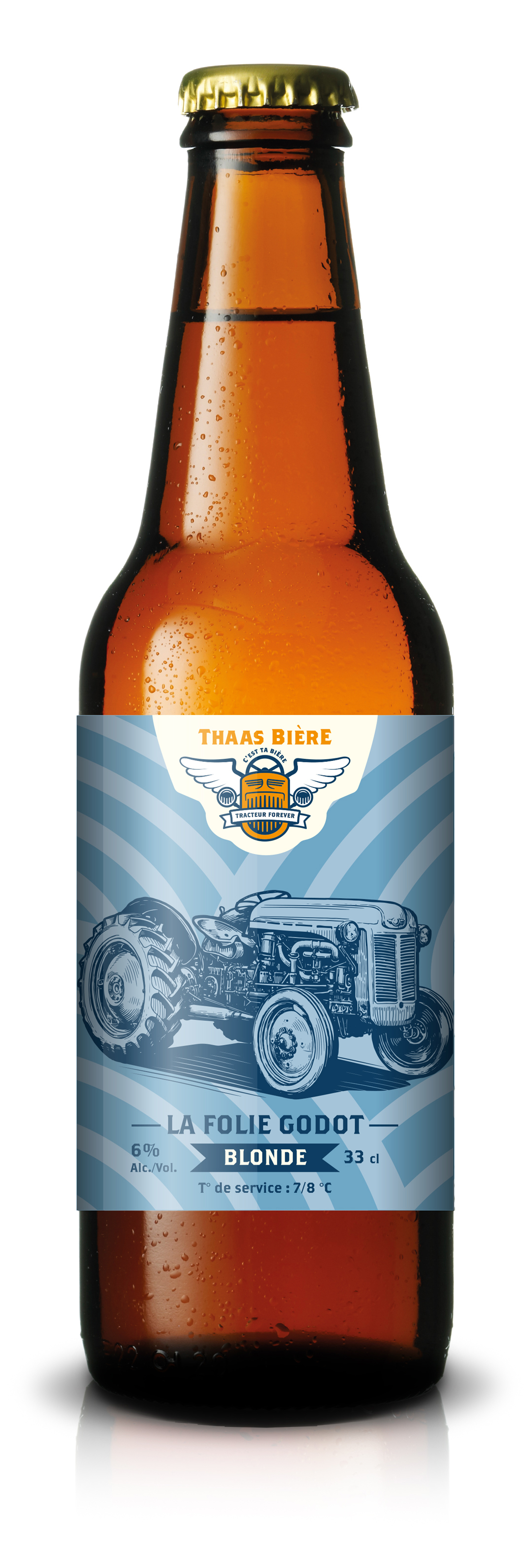 Quant au nom de la bière “La folie godot”, il s’agit tout simplement du nom d’une parcelle cultivée. Et pour couronner le tout, le facing de l’étiquette met en avant le tracteur, composant essentiel de la réussite des cultures. Les différentes gammes de THAAS BIÈRE à venir, tourneront bien entendu autour de ce thème.
